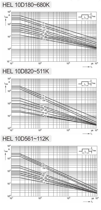 備注:上表KH超強(qiáng)型“電壓沖擊”40次僅適用于壓敏電壓430V及其以上規(guī)格的產(chǎn)品。